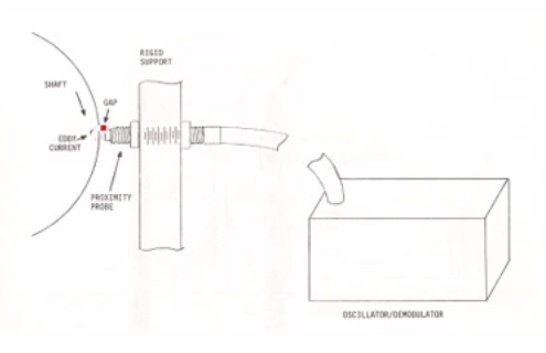 有三種transducers-的位移,速度,加速度位移傳感器位移傳感器的***常見的類型是接近探測(cè)器。運(yùn)行在渦流原理。它建立了一個(gè)***頻電場(chǎng)在探頭的端部并移動(dòng)的金屬表面之間的間隙。感測(cè)的間隙的變化。措施相對(duì)位移不是絕對(duì)位移。接近探頭敏感于軸的表面缺陷,如導(dǎo)電性和透氣性的劃痕,凹陷和振動(dòng)。