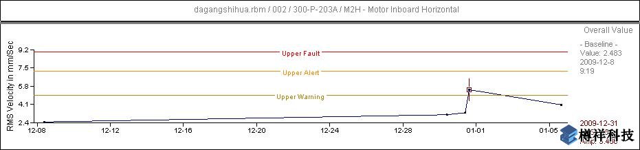 上圖中:******點為2009年12月31日振動值,2010年1月5日為電氣更換潤滑脂后的數(shù)值,從圖中可以看出該處徑向和軸向的振動變化趨勢一致,換油后對振動改善不大。