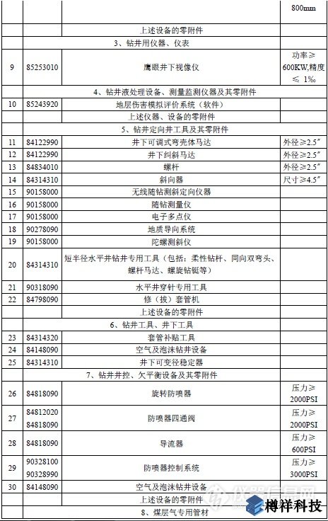 附表:勘探開發(fā)煤層氣免稅進口物資清單