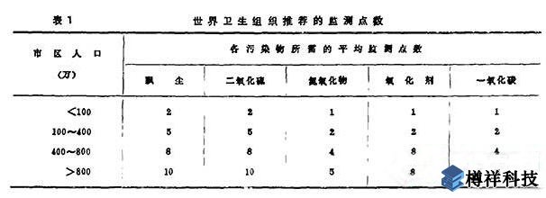 1976年世界衛(wèi)生組織推薦的監(jiān)測(cè)點(diǎn)數(shù)見表1