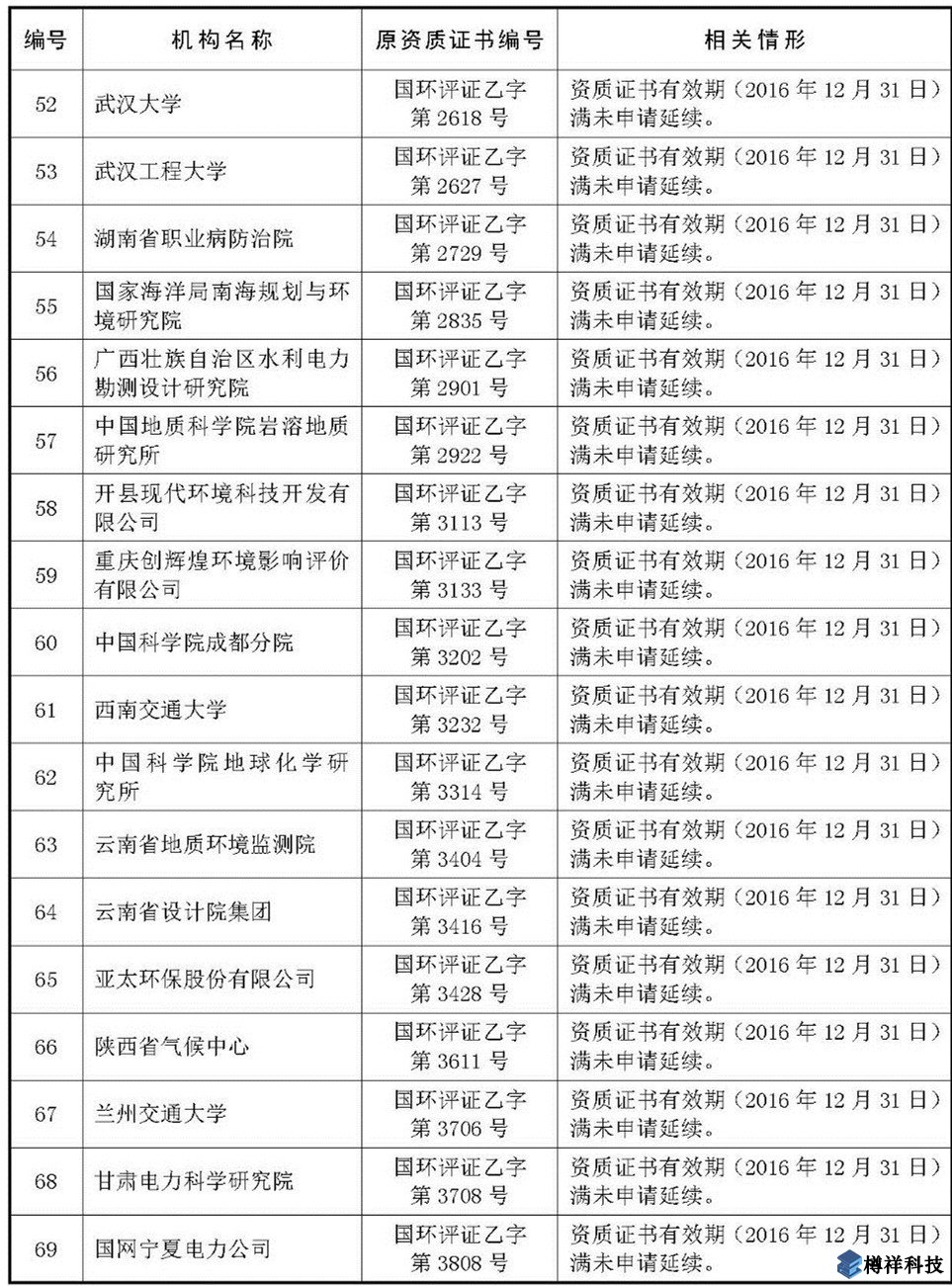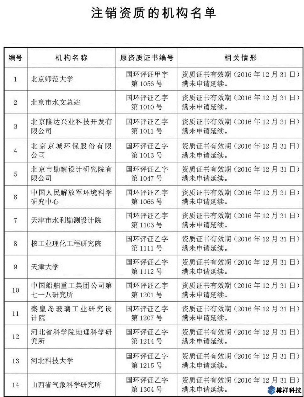環(huán)境保護部發(fā)布關于注銷69***機構建設項目環(huán)境影響評價資質的公告,根據《建設項目環(huán)境影響評價資質管理辦法》(環(huán)境保護部令第36號)的有關規(guī)定,我部對建設項目環(huán)境影響評價資質(以下簡稱資質)證書有效期滿未申請延續(xù)的69***機構資質予以注銷。