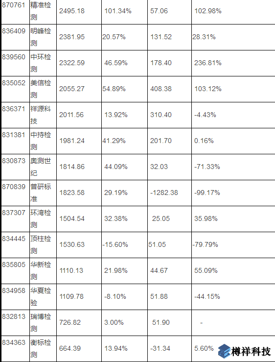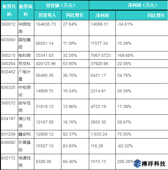 ***內(nèi)上市檢測公司營業(yè)額、凈利潤一覽