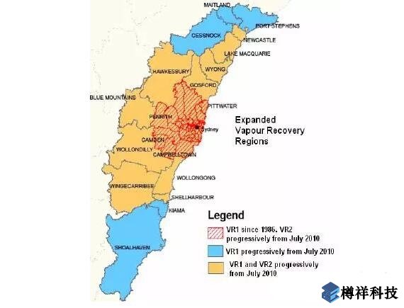 澳大利亞地廣人稀,油氣回收從人口較稠密地區(qū)開(kāi)始。澳大利亞的新南威爾士地區(qū)在2009年正式通過(guò)法規(guī),要求加油站采用二級(jí)油氣回收系統(tǒng)、氣液比在自動(dòng)在線監(jiān)測(cè)以及一級(jí)油氣回收儲(chǔ)油罐壓力監(jiān)測(cè)。