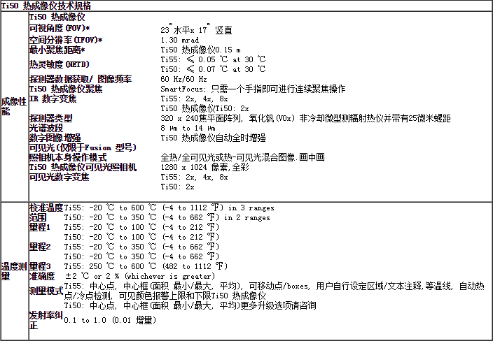 Ti50 熱成像儀產(chǎn)品采用新的IR-Fusion™技術(shù), IR-Fusion可捕獲可見光圖像和紅外圖像,讓IR圖像分析變得不再神秘.它可以幫助更好的識別和報告可疑組件,可在***時間完成完成維修工作.詳情請查看位于本頁內(nèi)容導(dǎo)航部分的IR-Fusion選項.