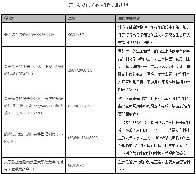 總體來(lái)說(shuō),歐洲議會(huì)、歐盟理事會(huì)和歐盟委員會(huì)等行政組織是歐盟化學(xué)品環(huán)境安全的立法、監(jiān)督和決策機(jī)構(gòu),它們對(duì)歐盟化學(xué)品環(huán)境安全管理政策、法令和條例的制定和決策起到非常重要的作用。