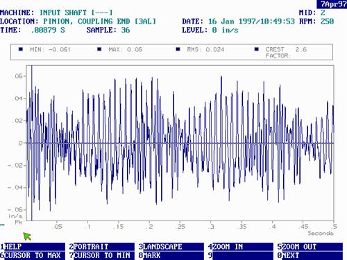 時域信號的同步平均已經(jīng)存在了很長時間,但在我看來,還沒有被用于機器問題診斷。無論如何,我們決定對變速箱振動特征進行同步平均。這涉及在振動分析儀中使用轉(zhuǎn)速計衍生的同步觸發(fā)器來收集一起平均的一系列波形樣本。其中重要的部分是每個時間記錄的開始必須在所討論的齒輪的旋轉(zhuǎn)中完全同時發(fā)生。